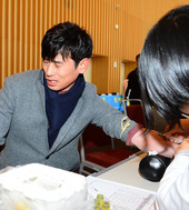 2012.12.06 13: 52강명구,'채혈할때 이악물고 눈 질끈'