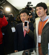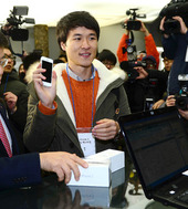 2012.12.07 08: 46사격 금메달리스트 진종오,'아이폰5 1호 개통자와 함께'