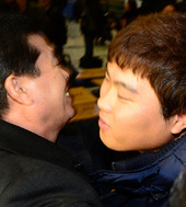 2012.12.13 19: 12아버지와 포옹하는 류현진,'우리 아들 해냈구나'