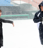 김현수,'김민아 아나와 눈밭에서~'