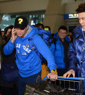 2013.01.14 17: 40박태환,'공항패션의 완성은 이어폰'