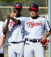 2013.01.26 12: 26훈련 중 이야기 나누는 봉중근-리즈