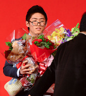 2013.01.31 17: 20꽃다발 묻힌 양학선,'앞이 안 보여요'