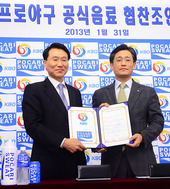 2013.01.31 14: 24협약서 나누는 KBO-동아오츠카