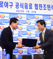 2013.01.31 14: 17KBO '프로야구 공식음료 협찬 조인식 가져'