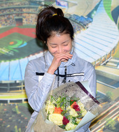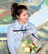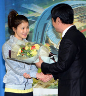 2013.01.31 09: 50꽃다발 받는 이시영,'복싱부 입단 생각에 미소가 절로'