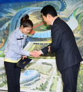 2013.01.31 09: 39이시영,'시장님, 자세가 어색해요'