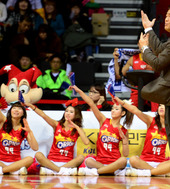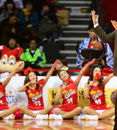 2013.02.03 15: 47치어리더와 추일승 감독, '날 따라해 봐요'