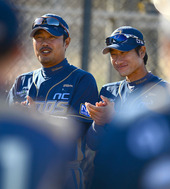 2013.02.08 15: 26아빠 미소 이호준-이현곤,'후배들 칭찬 받으며 우리도 좋아'