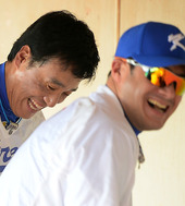 2013.02.14 15: 14이승엽-서재응, '훈련은 즐겁게'