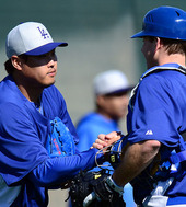 류현진-엘리스,'첫 피칭부터 호흡이 척척이네'