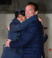 2013.02.19 20: 01김지운 감독-아놀드 슈왈제네거,'다정한 포옹'