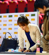 2013.02.23 16: 25윤태진 아나운서,'사인하느라 바빠요'