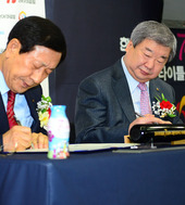 2013.02.28 14: 33구본능 총재-양기락 대표,'조인서를 사인을 하며'