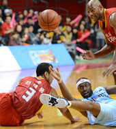 전태풍-벤슨,'치열한 루즈볼 다툼'