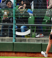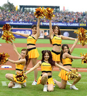 야구팬들의 시선을 한몸에 받는 치어리더