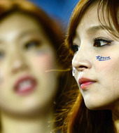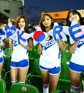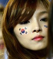 아름다운 한국 여성팬.'코리아 파이팅'