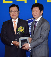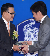 2013.03.07 15: 23정몽규 신임 회장, 전임 조중연 회장에게 공로패 전달