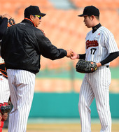 2013.03.08 15: 04정민태 코치,'고원준! 잘 해줬어'