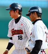 2013.03.08 14: 52김시진 감독,'경기 중 문제점에 대해 얘기를 나누며'