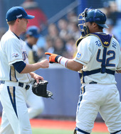 2013.03.09 13: 25김태군,'아담! 멋진 피칭이야!'