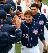 2013.03.12 16: 26홍성흔,'기분 좋은 첫 승!'