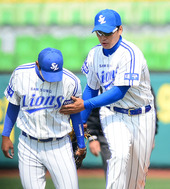 2013.03.12 13: 40이승엽,'성환아! 멋지게 막아냈어'
