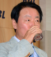 2013.03.12 11: 49다소 긴장한 한선교 KBL총재,'목이 타네'