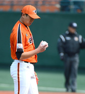2013.03.14 13: 44한화 선발 김혁민,'폭투로 실점 허용하다니'