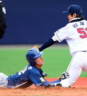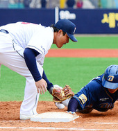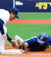 2013.03.14 14: 11모창민,'1루수 동주형, 무서워'