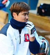 2013.03.14 11: 23홍성흔,'난로에 손 좀 녹이고'