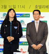 2013.03.14 11: 38야나-황현주 감독-황연주,'다소 긴장한 표정'