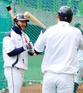 2013.03.14 11: 43홍성흔,'현수야, 배트 그립을 이렇게 잡아봐'