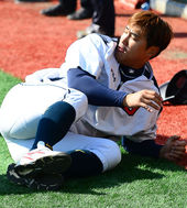2013.03.15 11: 27홍성흔,'어이쿠! 무서웠다고'