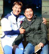 2013.03.15 11: 12홍성흔,'전임 박재홍 회장님과 함께 다정한 포즈'