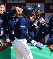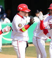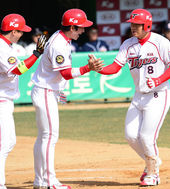 2013.03.16 15: 05안치홍,'홈 밟으며 하이파이브!'
