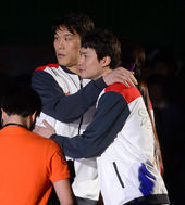 서장훈,'주장 조동현과 뜨거운 포옹'