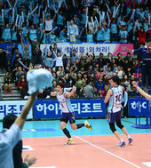 2013.03.19 20: 44'챔프전 진출' 대한항공,'삼성화재 나와라!'