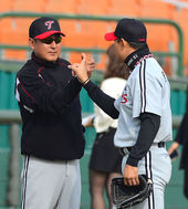2013.03.19 15: 48김기태 감독,'중근아! 손가락 힘 자랑하는거야?'