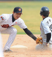 2013.03.19 15: 34박기혁,'2루 도루는 어림없어'