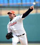 2013.03.19 13: 29역투하는 한화 선발 이브랜드