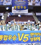 2013.03.19 19: 15우리은행,'통합우승 V5 달성했어요'