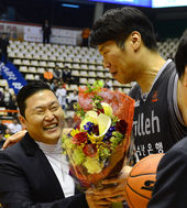 2013.03.19 19: 16싸이 꽃다발 미소 짓는 서장훈 "웃으며 떠날게요"