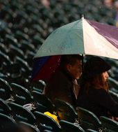 2013.03.20 11: 44찌그러진 우산 속에서 야구 관전하는 연인들