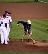 2013.03.20 11: 45비에 젖은 마운드를 정리하는 진행요원