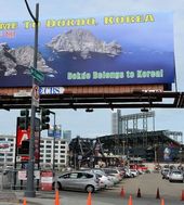 2013.03.20 07: 51WBC결승전 경기가 벌어질 AT&T 경기장 앞의 독도 광고판