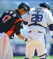 2013.03.21 13: 23찰리 공 맞은 강민호,'허준! 형이 대신 맞아라'