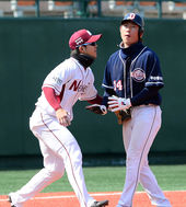 2013.03.21 13: 30'도루 실패' 고영민,'태그 살살 해줘'