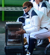 2013.03.21 11: 00홍성흔,'따뜻한 난로는 내 차지~'