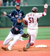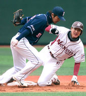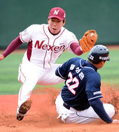 2013.03.22 14: 58깜짝놀란 강정호,'성흔이형이 2루 도루라니~'